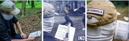 How many pictures do we need to see of a masked man reading Patriot Front’s membership manual while sitting in the woods? Is this what white nationalist activism really looks like?