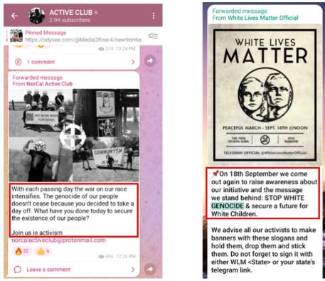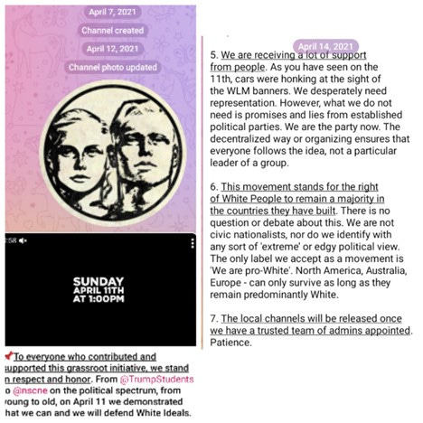 RAM and Patriot Front’s management of online content and recruiting clearly stem from either a single team or a small handful of teams. This can be seen, for example, in the way that Telegram admins for WLM also help run Active Clubs. The online management across these groups is shared, and the content creators use the same or similar language, logos, mottos, and PR techniques.