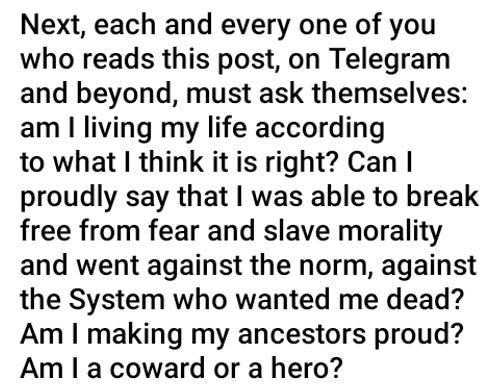 “We don’t need internet trolls crying about how our lands are lost. We need warriors to take up the sword and shield of our ancestors and fight for the future of our people! What are you waiting for?”