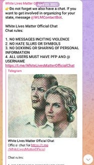The official WLM channel was created on April 7, 2021, and demonstrated no activity for five days. On April 12, the channel first featured a photo along with a few posts promoting marginal actions that had taken place around the US. On April 14, whoever runs the channel submitted a post pleading for members to remain patient. “The local channels will be released once we have a trusted team of admins,” they promised.
